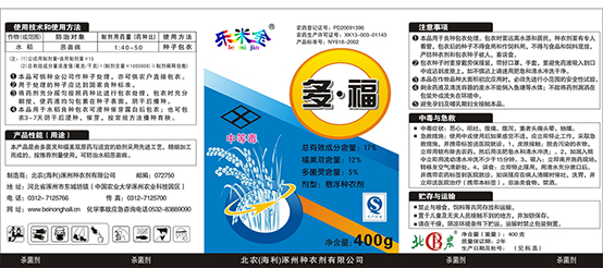 北農(nóng)(海利)涿州種衣劑有限公司是由中國(guó)農(nóng)業(yè)大學(xué)與湖南海利化工股份有限公司于19984月合資成立的有限責(zé)任公司。公司主要從事懸浮種衣劑、干粉種衣劑、懸浮劑、可濕性粉劑、水乳劑等農(nóng)藥的研發(fā)、生產(chǎn)和銷(xiāo)售。